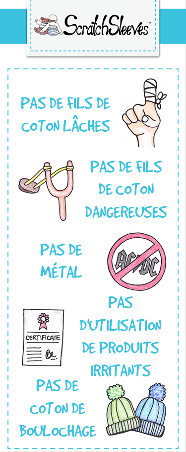 Je tiens à vous remercier chaleureusement d'avoir eu l'idée de ces fantastiques manchons. Nous avons vécu quatre mois très stressants depuis que mon fils Jake a été diagnostiqué avec un eczéma sévère à l'âge de 10 semaines. J'ai commencé à utiliser les manchons hier et il a passé une journée fantastique. C'est la première fois que nous avons pu le laisser jouer sans avoir à nous asseoir à côté de lui au cas où il retirerait ses chaussettes de ses mains, ce qu'il fait toutes les deux secondes environ ! Jake va à la garderie et ils nous ont dit à quel point ils étaient merveilleux. Il a passé une journée formidable avec eux et a même eu le meilleur sommeil de la journée depuis très, très longtemps. Je vais les recommander à tous les médecins que nous verrons à partir de maintenant, car ils n'ont eu aucune solution, même si nous étions à bout de nerfs ! Merci beaucoup.